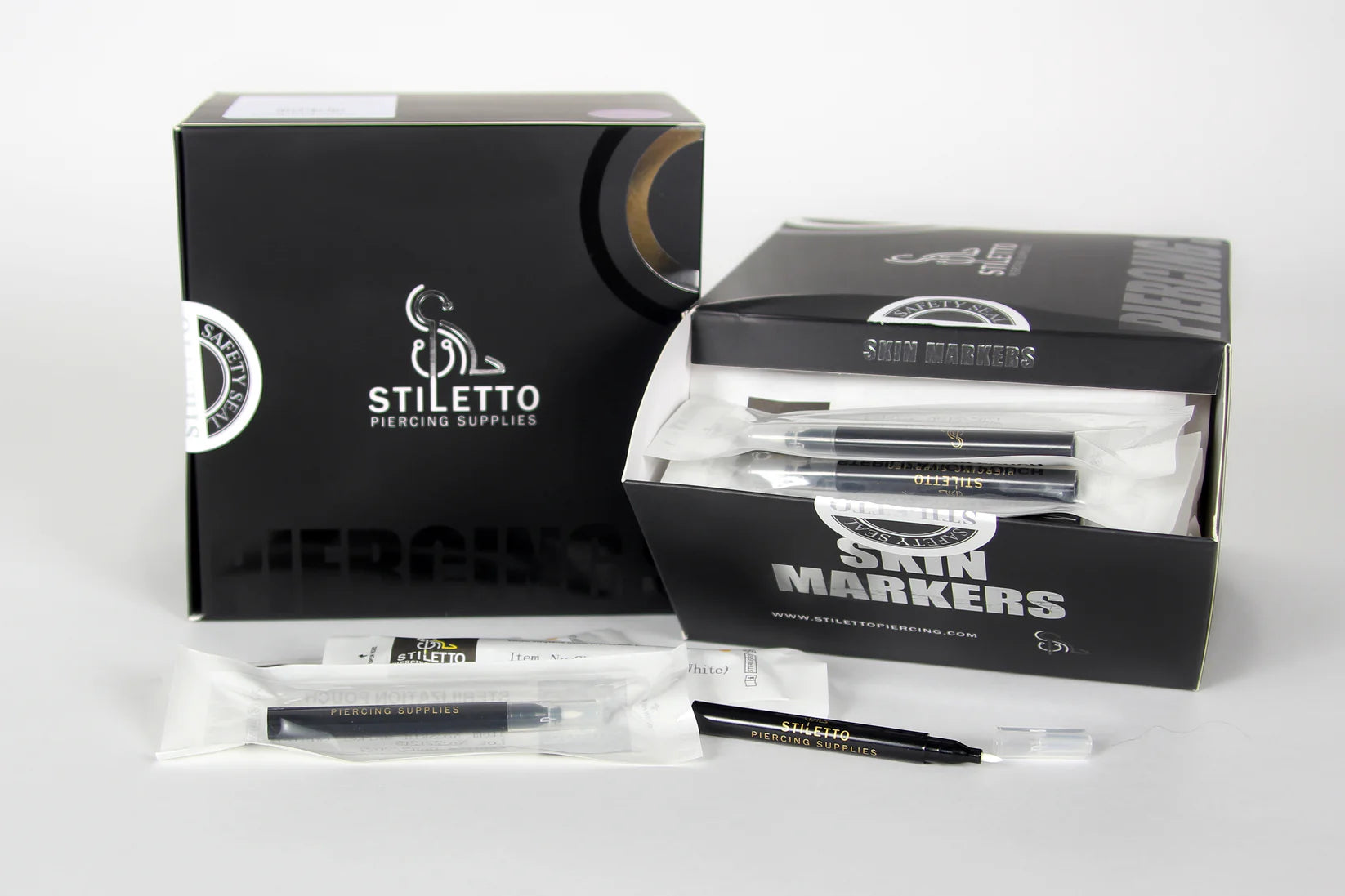 A nossa grande inovação, o marcador de cor branca, usa tinta de tatuagem diluída que permite fazer marcações bem visíveis em peles claras, escuras e fortemente tatuadas. Este marcador tem-se tornado num favorito entre os pirecers e apelidado de “game changer”.